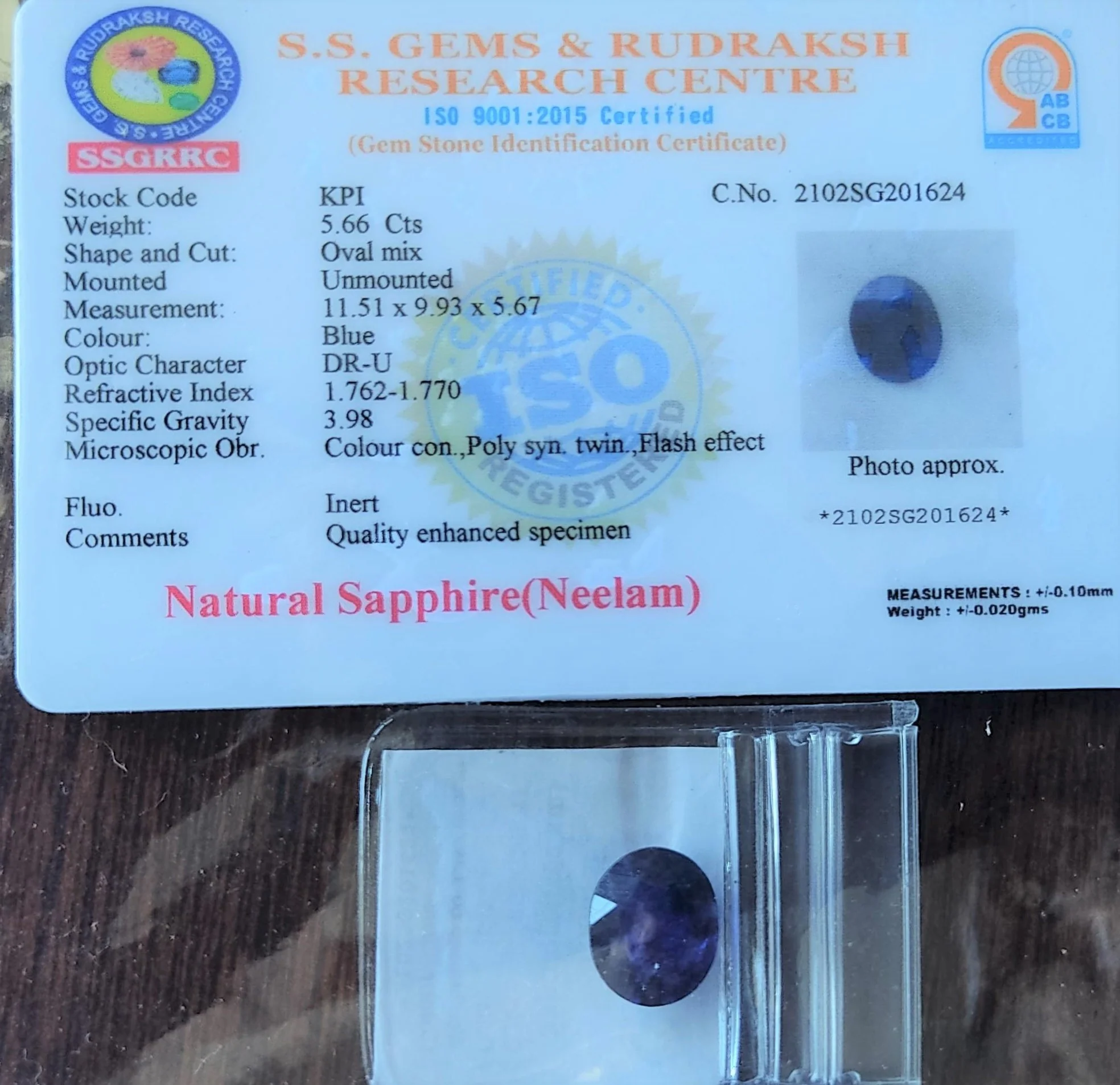 Certified Blue Sapphire (Neelam) stone